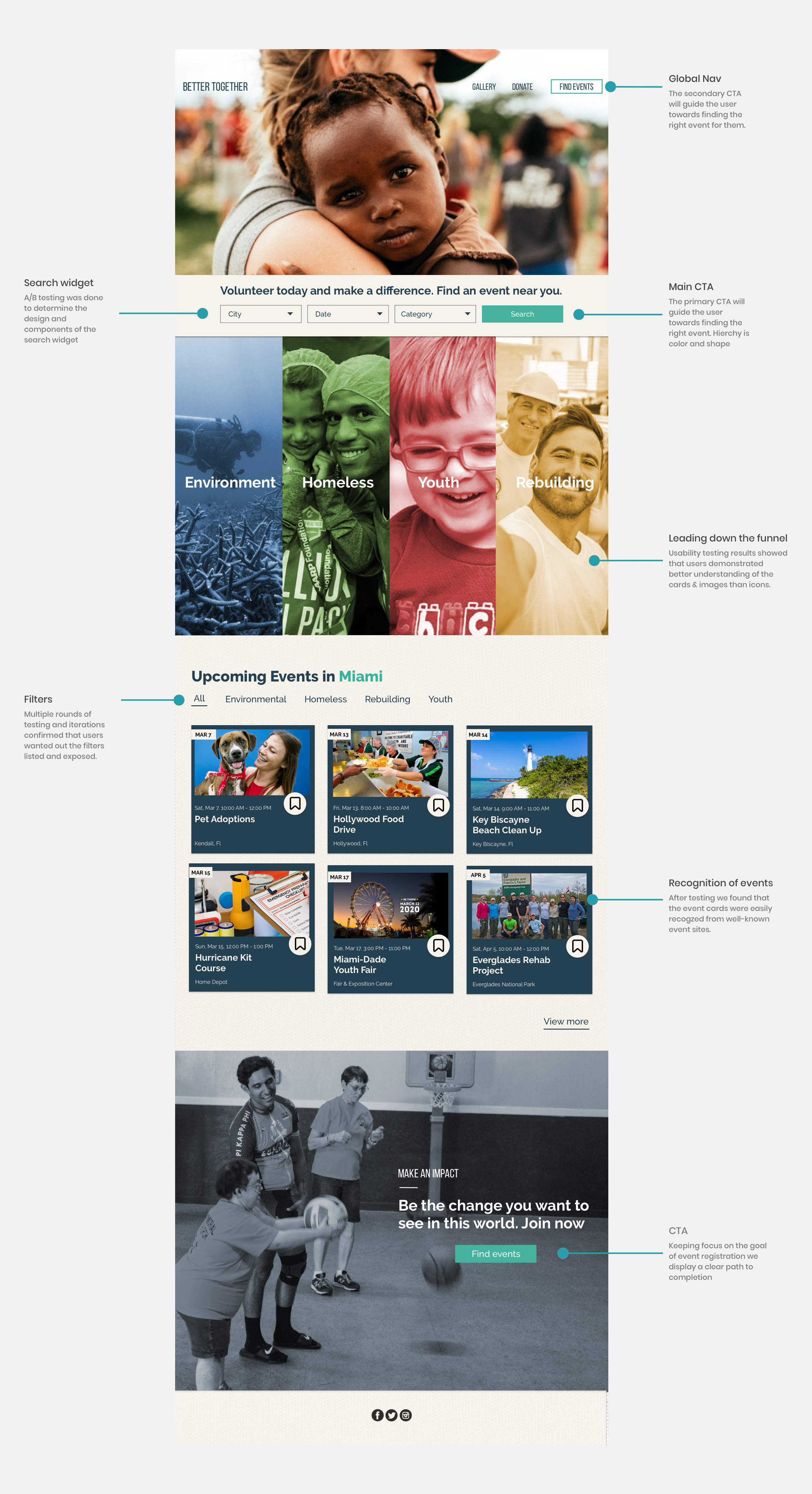 We found high-traffic volunteer websites that had a clear path to completion and defined CTA’s for users.