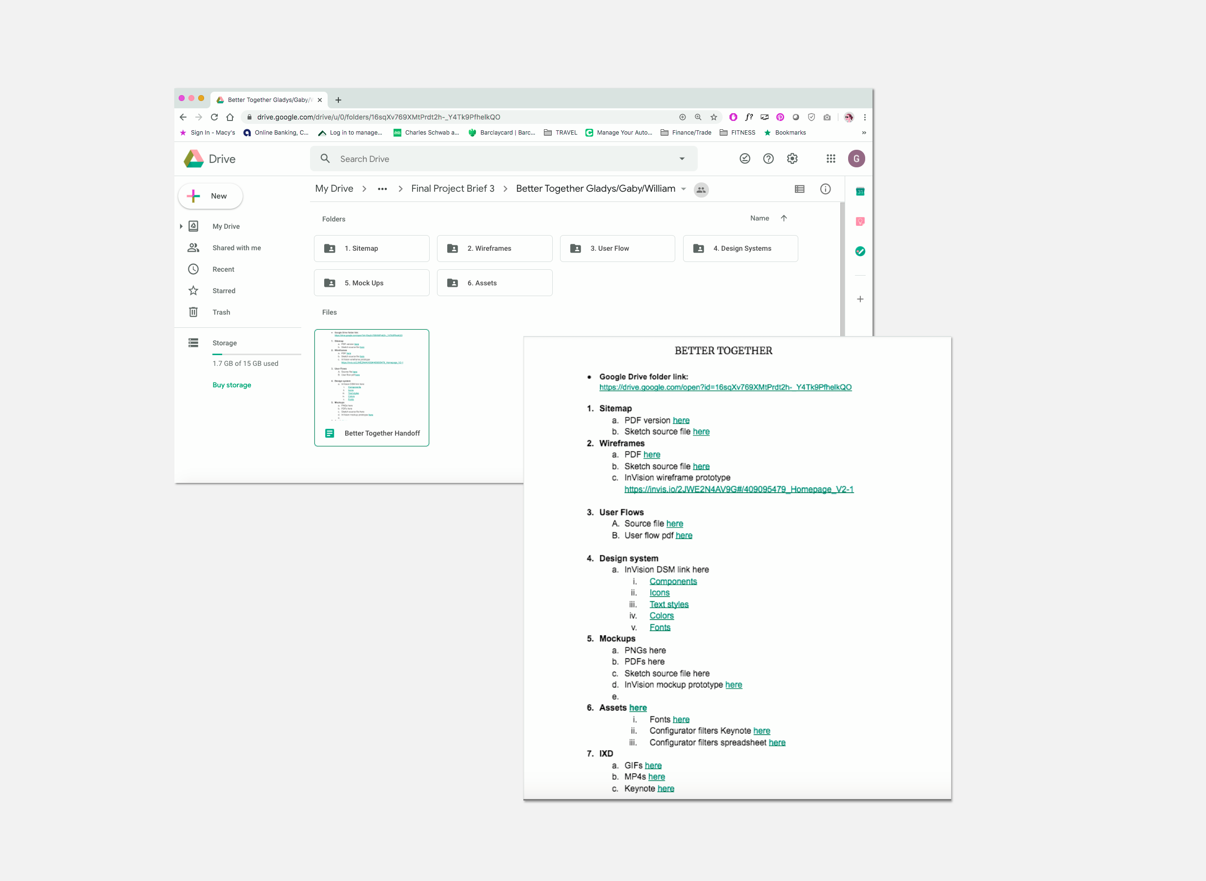 We adopted the Lean UX approach and prioritized rapid sketching and feedback. We understand the importance of collaborating and testing early on in order to reveal what approaches will work and which ones will not.